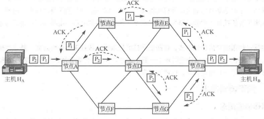 数据报分组交换:每个报文分组又称为数据报,每个数据报在传输的过程中都要选择路径,各个数据报可以按照不同的路径到达目的地。在发送方,每个数据报的分组顺序与每个数据报到达目的地的顺序是不同的。在接收方,再按分组的顺序将这些数据报组合成一个完整的报文。