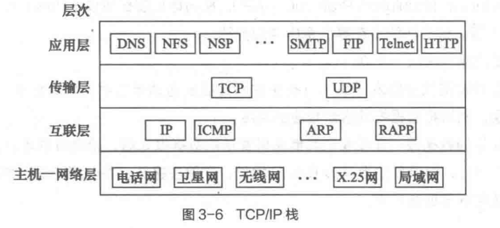 • 主机—网络层(网络接口层):包含了以太网协议、令牌环网协议、分组交换协议等。