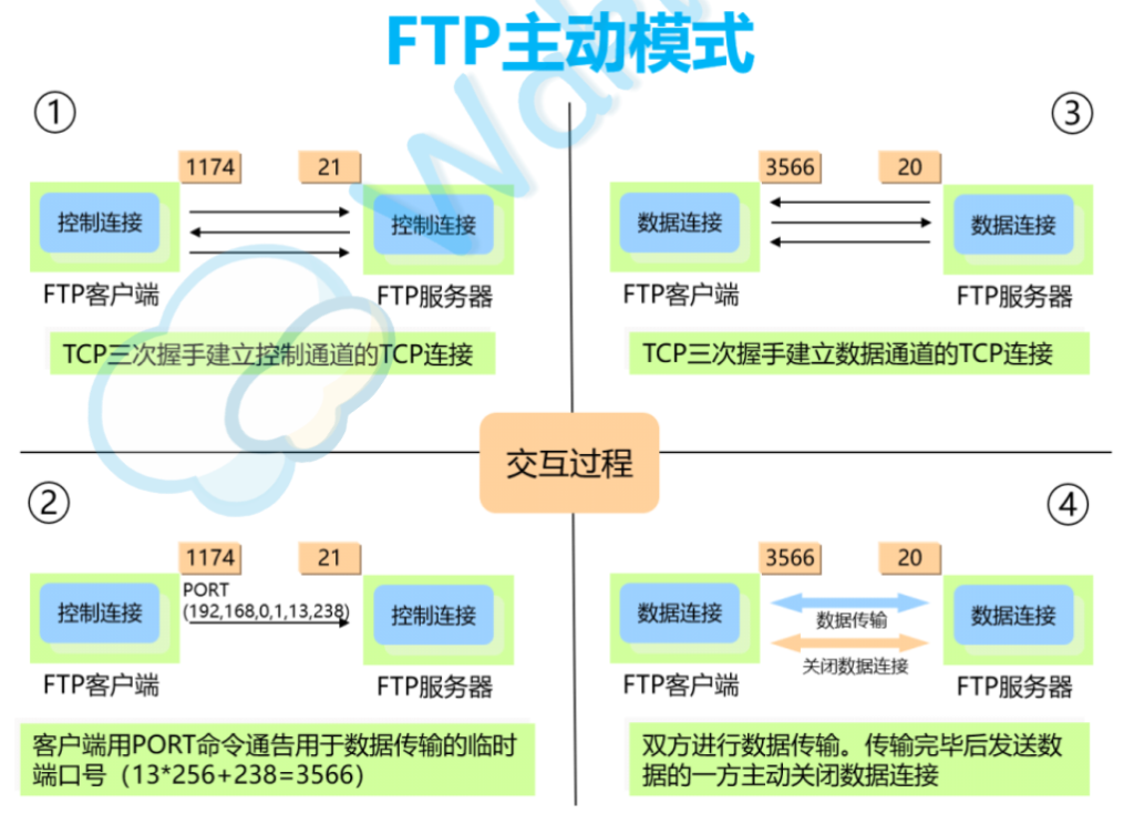 | 主动[PORT] | FTP服务器发起数据连接 [服务器主动] |