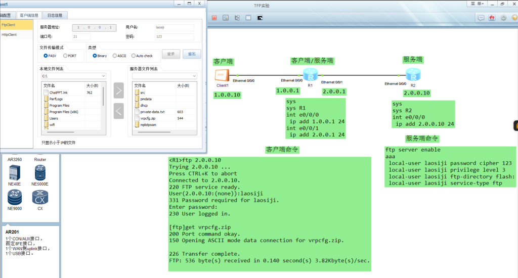 | local-user laosiji password cipher Huawei@123 | 创建FTP账号 |