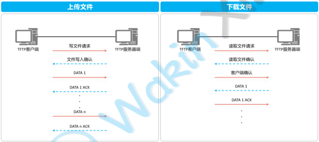 | TFTP | Trivial File Transfer Protocol,简单文件传输协议 提供不可靠的文件传输服务 常用于网络设备的配置文件和系统文件传输 |