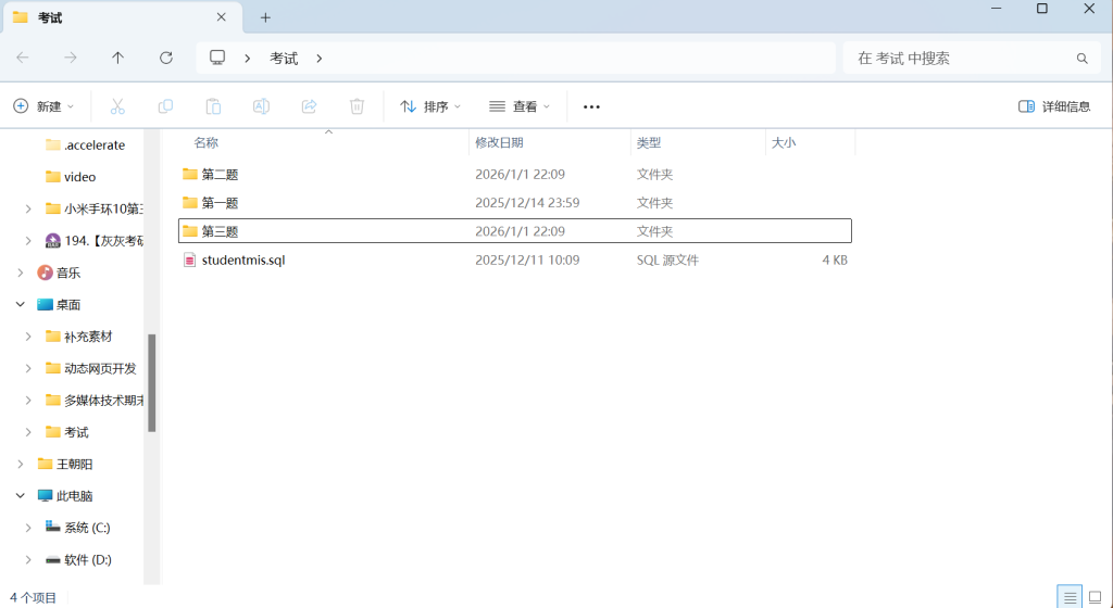 1.考试文件夹可能如下