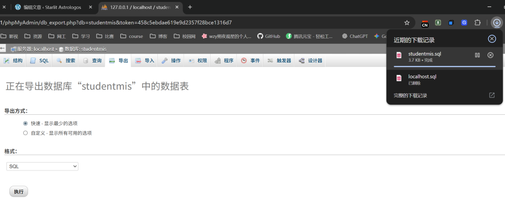 3.数据库文件导入方法上文已写,接下来说导出方法